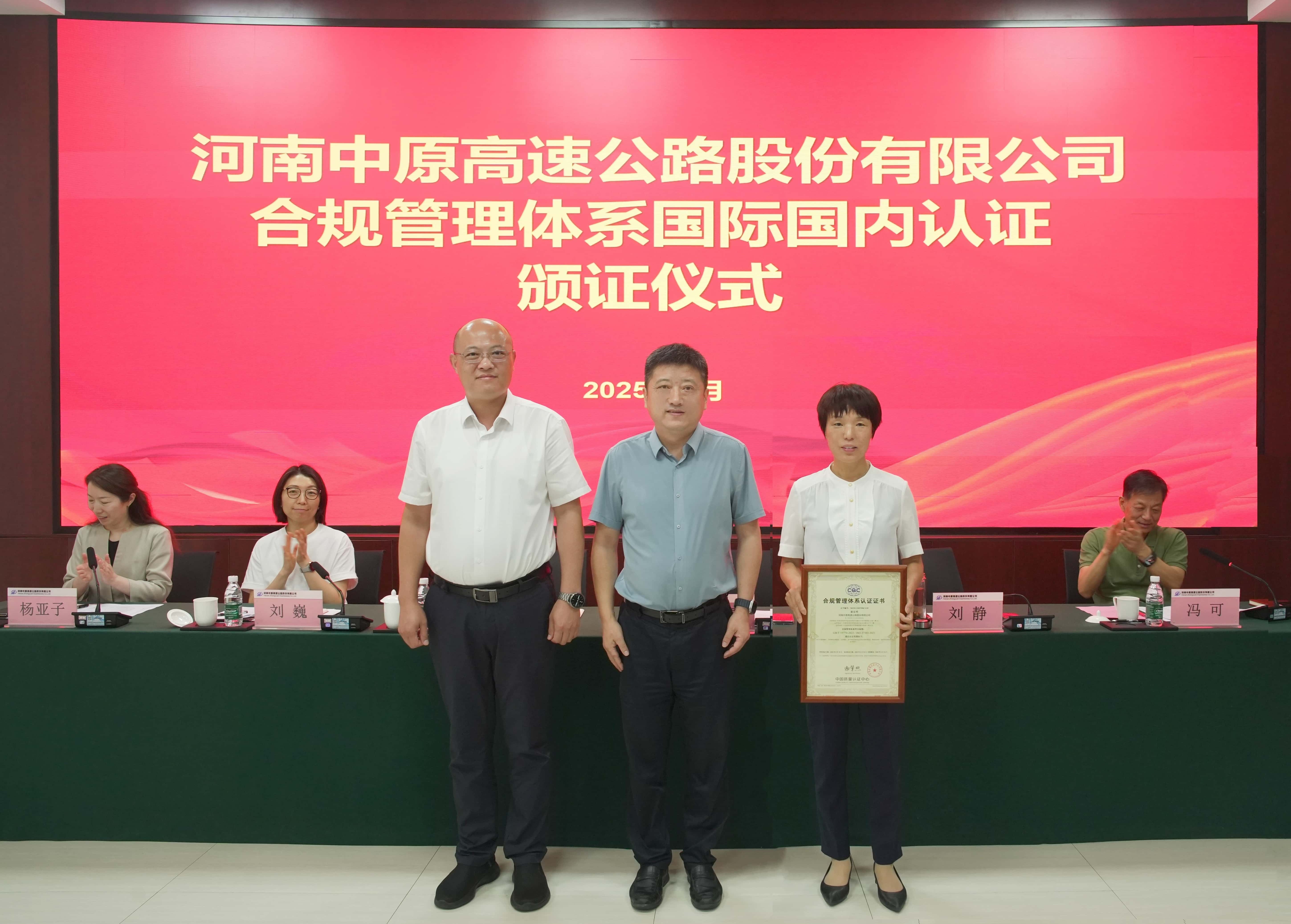 集團(tuán)黨委委員、副總經(jīng)理袁凍雷參加中原高速合規(guī)“雙認(rèn)證”頒證儀式并專題聽(tīng)取科創(chuàng)工作匯報(bào)